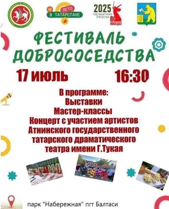 Приглашаем на фестиваль «Наш двор» — он пройдет 17 июля в 16.30 в парке отдыха «Набережная». Жителей ждет насыщенная программа — выставки, мастер-классы. Завершится день концертом с участием артистов Атнинского государственного татарского драматического театра имени Габдуллы Тукая. Год от года наш район становится все краше. Помимо благоустроенных общественных пространств, с 2020 года по программе Раиса РТ Рустама Минниханова обновляются дворы. За 5 лет благоустроено 24 двора из 46 МКД. «В рамках данной программы во дворах многоквартирных домов проложены дорожки, тротуары, обустроены игровые площадки, установлено искусственное освещение и установлены мусорные урны для бытовых отходов. Эти достижения — результат совместной работы народа, власти и поддержки руководства республики», — отметил глава Балтасинского муниципального района, секретарь местного отделения партии Единая Россия Рамиль Нутфуллин Проведем это Лето в Татарстане ярко и вместе! #ЛетоВТатарстане #АйдаГулять