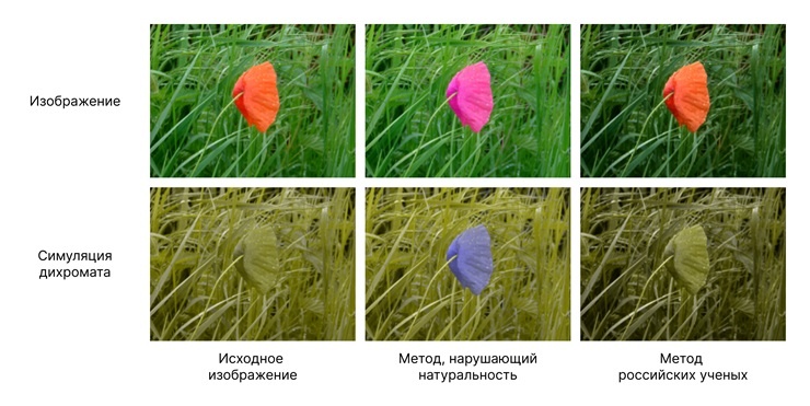 основе метода лежит моделирование зрения дихроматов – алгоритмы