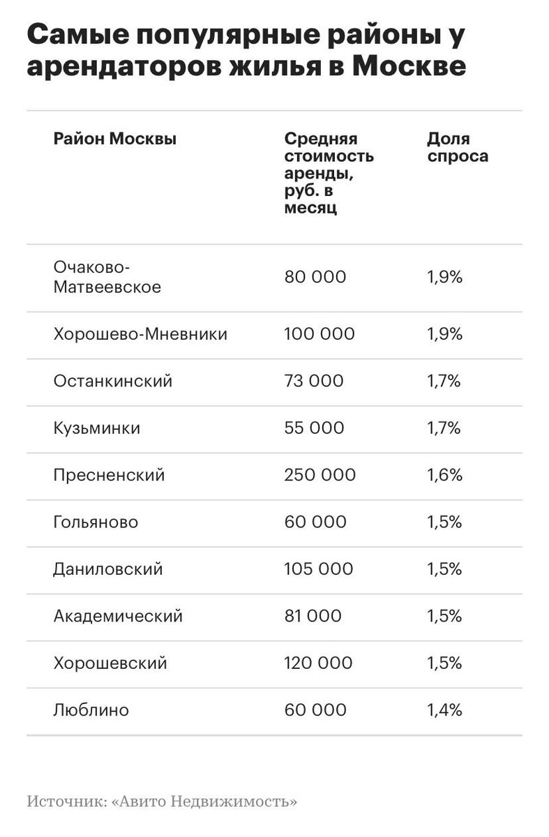 ⇒ Аналитики проанализировали число звонков и сообщений по объявлениям и выделили самые популярные районы: