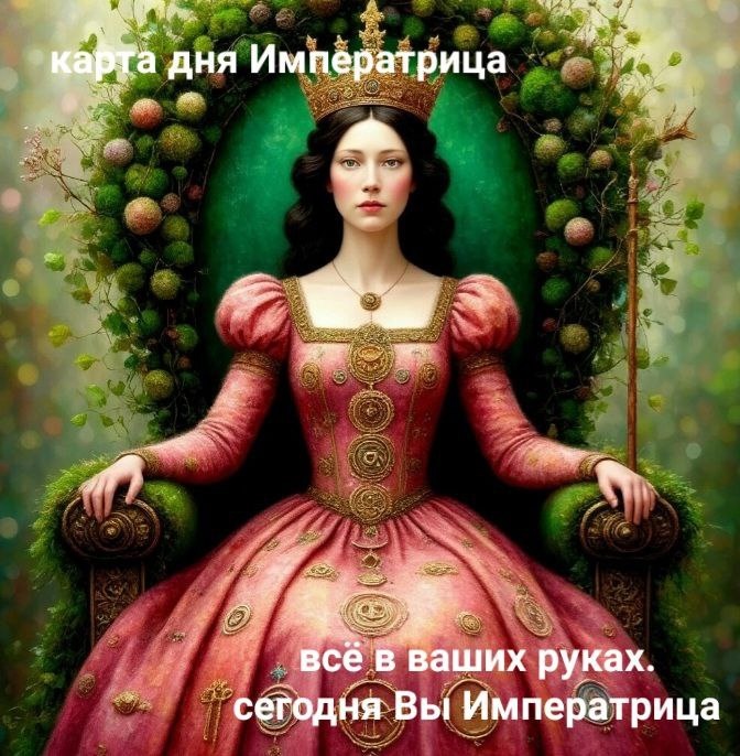 Карта дня Императрица Сегодня можно смело браться за дела, которые до этого вы не могли довести до конца. Всё получится! Сегодня вы Императрица! Так же день отлично подходит для наведения уюта в доме и перестановки.