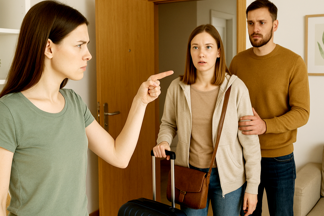 - Убирайся вон! И макаку свою забери. Жена! Посмешище, а не жена! Вот чемодан с твоими вещами, всё здесь. В моей квартире твоего ничего больше нет! Уходите, пока я полицию не вызвала, влюблённые!