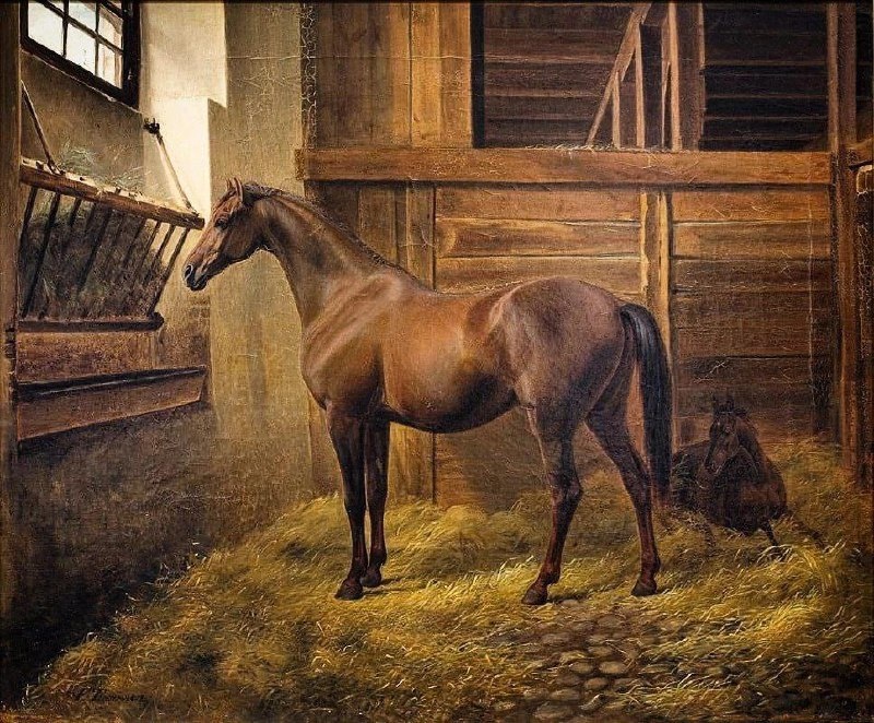 История одной картины: «Сабина» Перед нами простой, тихий сюжет: лошадь в конюшне, теплый солнечный свет, немного сена на полу. Но в этой повседневной сцене — особая нежность и внимание к деталям. Фриц Томсен написал «Сабину» в 1878 году, и это не просто изображение животного, а почти портрет, где художник передает характер и спокойное достоинство лошади. Здесь всё построено на теплом свете, мягких текстурах дерева и сена, уютной камерности пространства. Лошадь не смотрит на зрителя — она просто живёт в этом моменте: ест сено, отдыхает, дышит. Эта простота делает картину удивительно живой и даже немного медитативной. Полотно почти лишено действия, но именно в этом его красота: оно показывает ценность момента, в котором всё спокойно и правильно. Томсен умел передать особую тишину, ту, что возникает там, где жизнь идёт своим неторопливым чередом. #искусство #живопись #история Звучи в унисон!