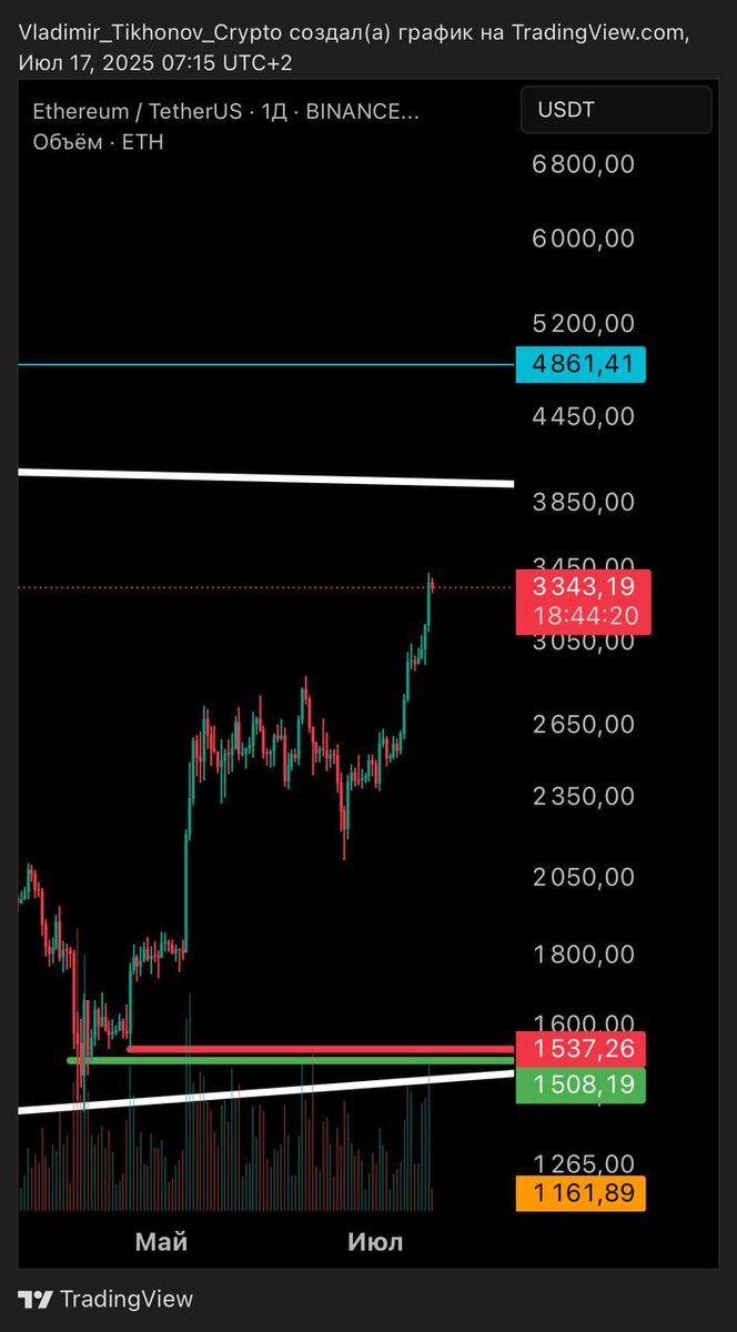Ускорение будет после пробоя границы глобального сужающегося диапазона. Локально возможен откат до 3000$.