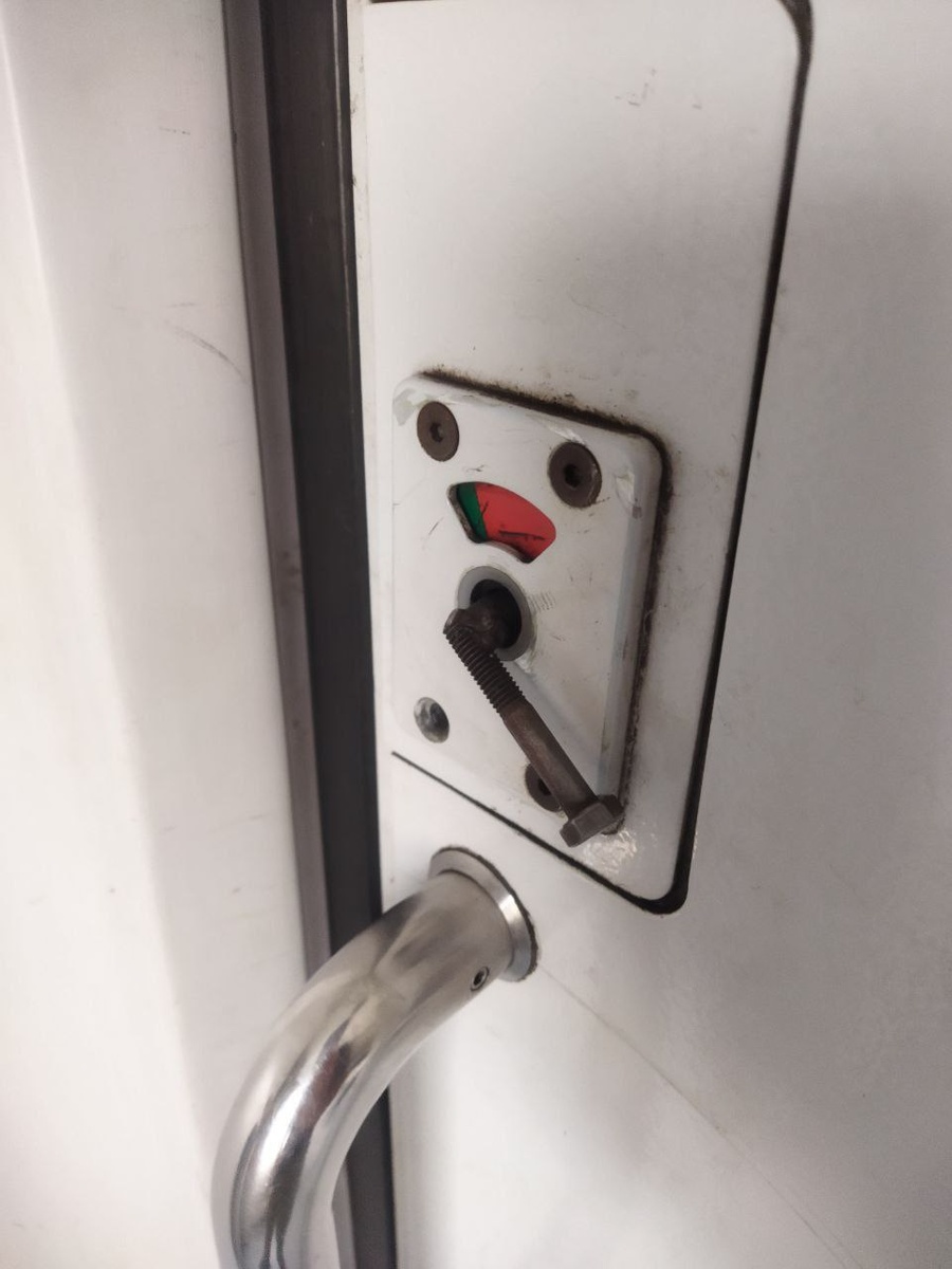 Повышенный комфорт новых электричек 18+ НАСТОЯЩИЙ МАТЕРИАЛ (ИНФОРМАЦИЯ) ПРОИЗВЕДЁН, РАСПРОСТРАНЕН И (ИЛИ) НАПРАВЛЕН ИНОСТРАННЫМ АГЕНТОМ КАВЕРЗИНОЙ СВЕТЛАНОЙ ВИКТОРОВНОЙ ЛИБО КАСАЕТСЯ ДЕЯТЕЛЬНОСТИ ИНОСТРАННОГО АГЕНТА КАВЕРЗИНОЙ СВЕТЛАНЫ ВИКТОРОВНЫ* * номер в списке Минюста 777 "ЭП2Д-0096 – просто приварили болт вместо ручки в уборной" Фото канала "Новосибирские железные дороги"