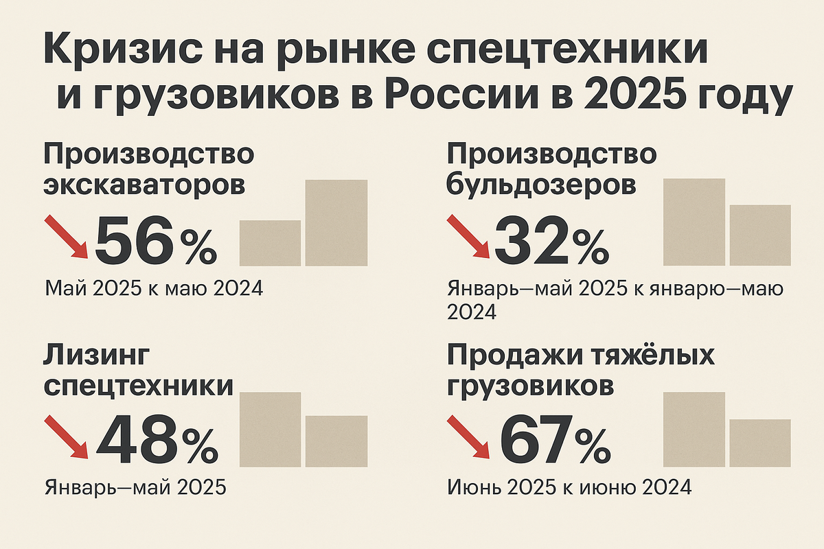 Российский рынок спецтехники и грузовиков в кризисе: обвальное падение производства, продаж и лизинга в первом полугодии 2025 года