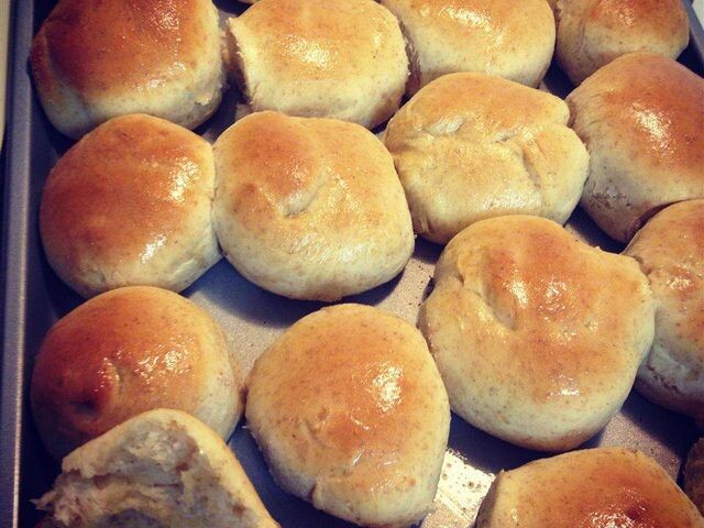 Булочки для сэндвичей с медовой пшеницей Сытные и вкусные булочки для сэндвичей в стиле кантри. Мед, цельная пшеница и совсем немного масла. Хорошо замораживаются! ⌛ Подготовка: 30 мин. ⏰ Приготовление: 2 час. 45 мин. 🍴 Количество: 14 рулонов Ингредиенты ✅ 1 ¼ стакана теплого молока ✅ 1 яйцо, взбитое ✅ 2 столовые ложки размягченного сливочного масла ✅ ¼ стакана меда ✅ 0.75 чайной ложки соли ✅ 2.75 стакана хлебной муки ✅ 1 стакан цельнозерновой муки ✅ 1 ¼ чайной ложки дрожжей для хлебопечки ✅ 2 столовые ложки растопленного сливочного масла Инструкция приготовления 1. Поместите ингредиенты в кастрюлю хлебопечки в порядке, рекомендованном производителем. Выберите цикл "Тесто" и нажмите "Старт" 2. После завершения цикла "Тесто" выложите тесто на слегка посыпанную мукой поверхность и раскатайте толщиной 3/10.00 см. Вырезать рулеты с помощью ножа для печенья диаметром 3-10.00 см. Выложить на слегка смазанные жиром листы для печенья; накрыть и дать подняться до увеличения в два раза,