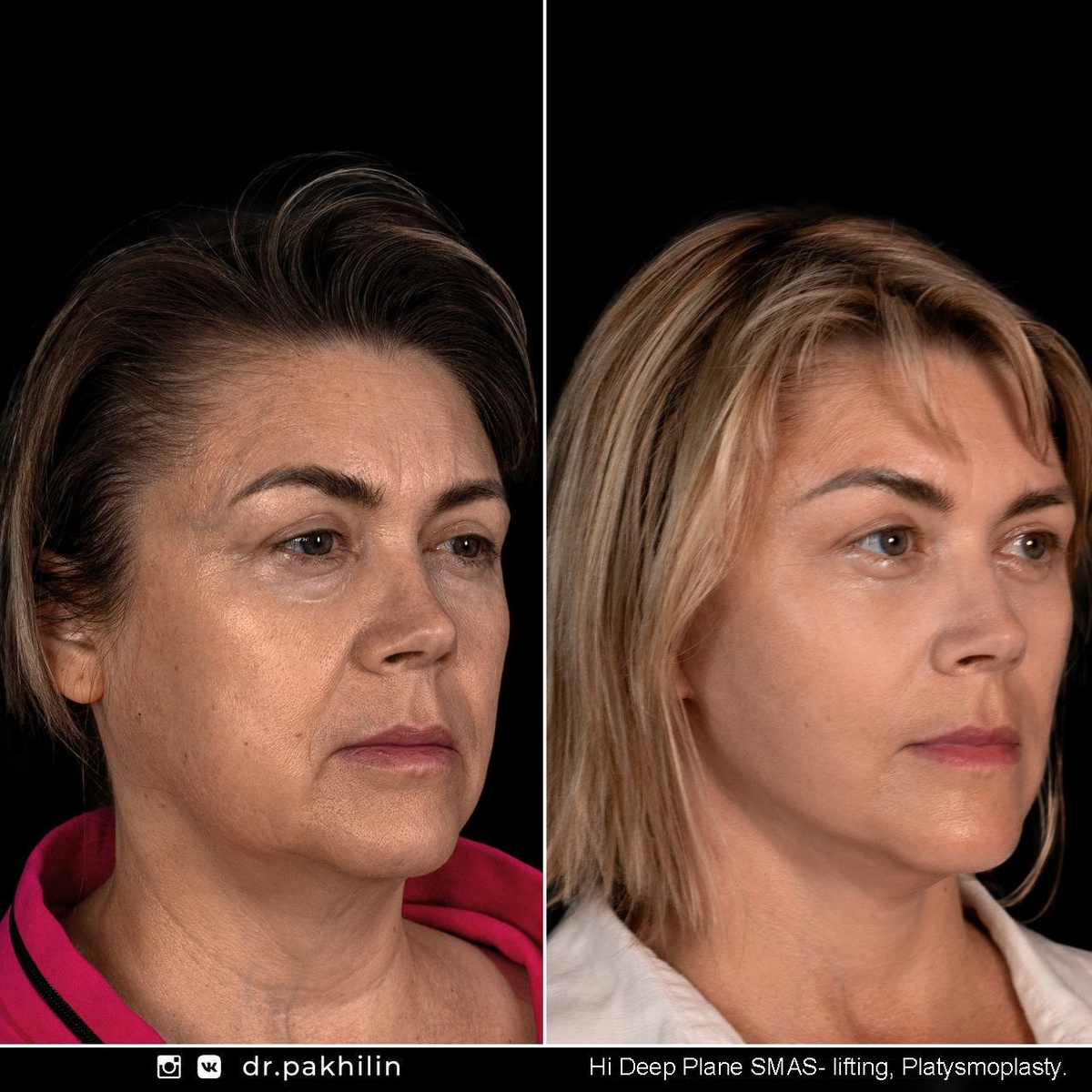 #SMASЛИФТИНГ #ДМИТРИЙ_ПАХИЛИН SMAS – лифтинг и платизмопластика ▫️Эффективность эстетической подтяжки лица зависит от возможности хирурга провести тщательную мобилизацию мышц и связок лица с последующим перемещением и фиксацией в более высоком положении. ▫️ Желательно переместить в такие зоны, где ткани располагались в молодом возрасте с целью сохранения индивидуальных особенностей лица. ▫️ С возрастом возникает растяжение не только кожи, но и самого SMAS со связками и глубокими мышцами. Поэтому мы проводим хирургическую подтяжку SMAS совмещая с лифтингом глубоких тканей лица. Стараемся избегать натяжения кожи, чтобы получить естественный результат без эффекта перенатянутого лица. 🔻Выполнено В данном случае мы провели высокий SMAS-лифтинг в сочетании с глубокой отслойкой Deep Plane и латеральной платизмопластикой. ❗В результат работы через 2 месяца видим: ▫️ хороший омолаживающий результат с лифтингом височной области и бровей, ▫️в средней зоне лица плавный контур перехода с