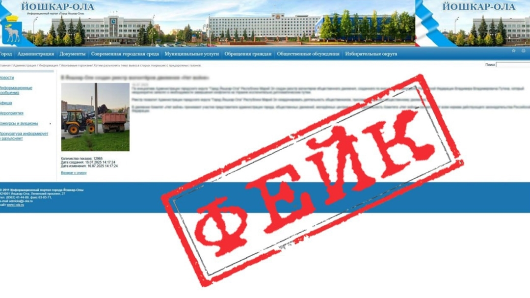 Марий Эл продолжают забрасывать фейками. Администраторам пабликов и Telegram-каналов предлагают опубликовать скриншот несуществующей публикации на официальном сайте мэрии Йошкар-Олы.
