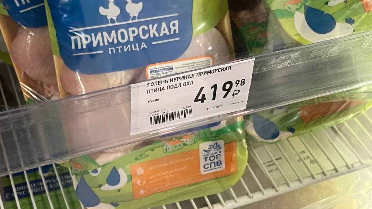 В январе 2025 года цены на курицу и свинину в Приморье почти сравнялись из-за дефицита мяса. Африканская чума свиней и птичий грипп поразили крупные фермы. В среднем филе стоило 700 рублей за килограмм. К июню ситуация улучшилась, и цены на курицу снизились. Мы сравнили стоимость куриного филе в Москве и Владивостоке: разница составила почти половину — 290 и 580 рублей за охлаждённую продукцию. Спустя два месяца мы снова проверили цены на мясо птицы. Стоимость немного снизилась. Очень средняя цена на сегодня: 🟥 Части курицы от птицефабрики Межениновская — от 200 рублей. 🟥 Филе и крылышки (заморозка) — от 380 рублей. 🟥 Охлаждённое филе и крылышки — от 450 рублей за килограмм. А по ссылке подробный список с ценами, птицефабриками и магазинами. 🟥 Подписаться | Предложить новость