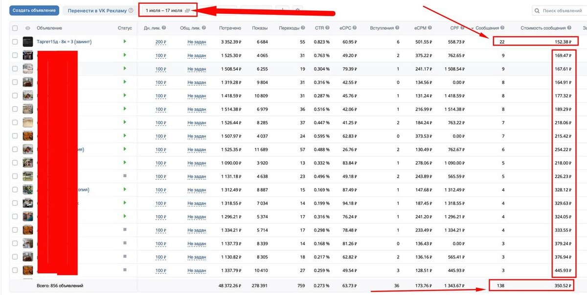 Что там по лидгену на себя в июле? Те кто в тусовка, помнит мои лиды в июне по 1200-1300 чисто по ключам таргет Таргетолог. Тогда в видосе я сказал что буду переходить на админов И собственно, из всех крео что крутились только 1 связка была на ключи и всё остальное - это админы по нишам (тут штук 10 разных тестировал) Не спрашивай какие ниши, в открытую тут не говорю, только в тусовке в отчетном видосы будет) Так вот за июль потратил 48к и получил 138 лидов по 350р в среднем. Вроде ок да? Но конверсия в оплату оставляет желать лучшего. Качество лидов тут прям хорошее идет, никто не посылает))) Человек 10 ждут "Подходящего" момента чуть позже и кто готов работать но не сейчас тк их клиенты в отпусках... В общем для себя принял решение - газовать дальше и набирать тут как можно больше лидов, благо я знаю как потом прогревать дальше людей и вести по воронке (4 месяца) Ладно) Держу в курсе, обнял))