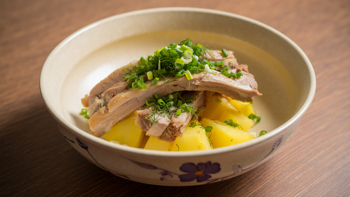 Тушите всё под крышкой на небольшом огне до мягкости картофеля и сочности ребрышек. Ориентируйтесь по готовности - обычно 30–40 минут. 🟩 Шаг 5. Финиш: чеснок и зеле