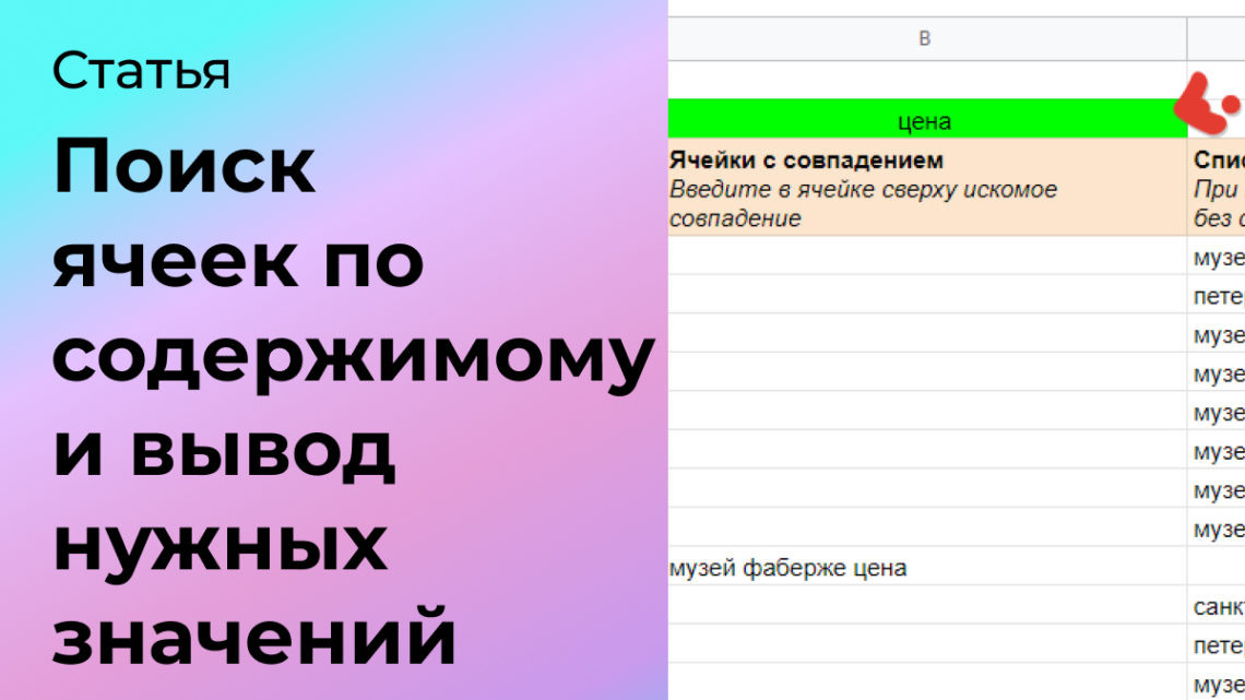 Чаще всего в Эксель я использую набор формул, призванный по тексту находить соответствие в ячейке и отмечать их либо копировать в соседний столбец. Очень удобно использовать для сортировки столбцов данных, когда нужно сделать её быстро без загрузки в Power Query или какой-то дополнительной обработки. Расскажу подробнее про это и в конце отдам шаблон. На скрине выше, видно, что в столбец с фильтром попадают только ячейки, содержащие упоминание цены. А в столбец без фильтра, все прочие — это сделано для того, чтобы в дальнейшем удобно было забирать найденные значения и использовать в работе. Формула для поиска по содержимому ячеек Excel Не пугайтесь, всё намного проще, чем кажется. Сейчас всё расскажу. Центральная формула состоит из следующих значений и будет выглядеть так: =if(isnumber(find("цены",А3)),А3,"") Таким образом, там, где есть упоминание “цена” мы получаем обратно эти ячейки. Для обычного поиска совпадения этой формулы достаточно. Но в нашем примере нужно найти все коммерческ