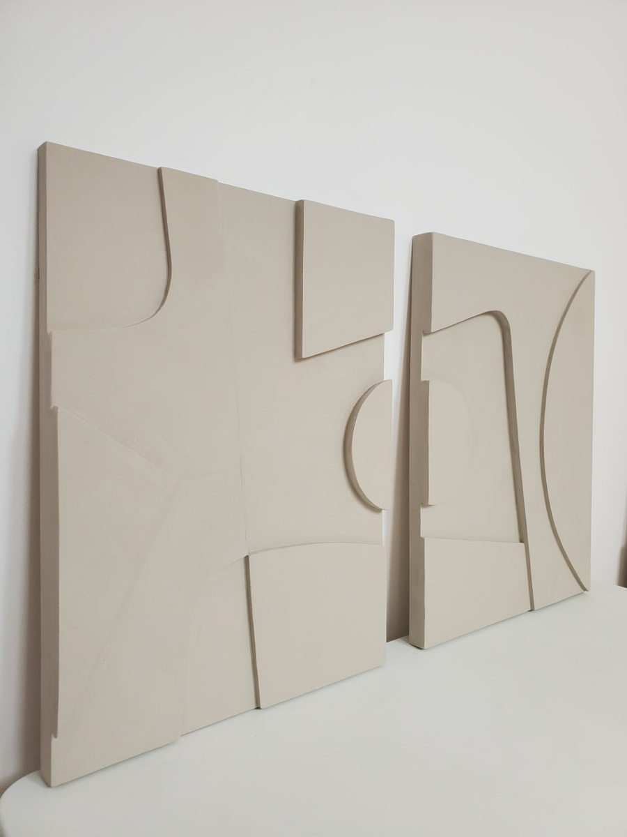 1. Soft Minimalism( мягкий минимализм) • Преобладают крупные, простые формы, плавные линии, перетекающие объемы • Цветовая гамма: натуральные, нейтральные оттенки в тон интерьера • Матовые текстуры, холсты без бликов, рельефные панно с однородной фактурой • Композиции «дышат» — много пустого пространства. 2. Органическая абстракция (Organic Abstract Art) • Мягкие, текучие формы и живые линии, напоминающие природные очертания — волны, камни, песок и т.д. . • Органичнская фактура: матовая, шероховатая или имитирующая природные материалы — камень, дерево, мох, глину. • Приглушенные натуральные оттенки цветов • Сбалансированная ассиметричная композиция. 3. Монохромный текстурный арт (Monochrome Textural Art) • В отличие от софт-минималистичных работ, которые мягко дополняют интерьер, монохромный текстурный арт выступает как самостоятельный визуальный акцент. Это не просто картина, а объёмный арт-объект, находящийся на стыке живописи, скульптуры и предметного дизайна. •