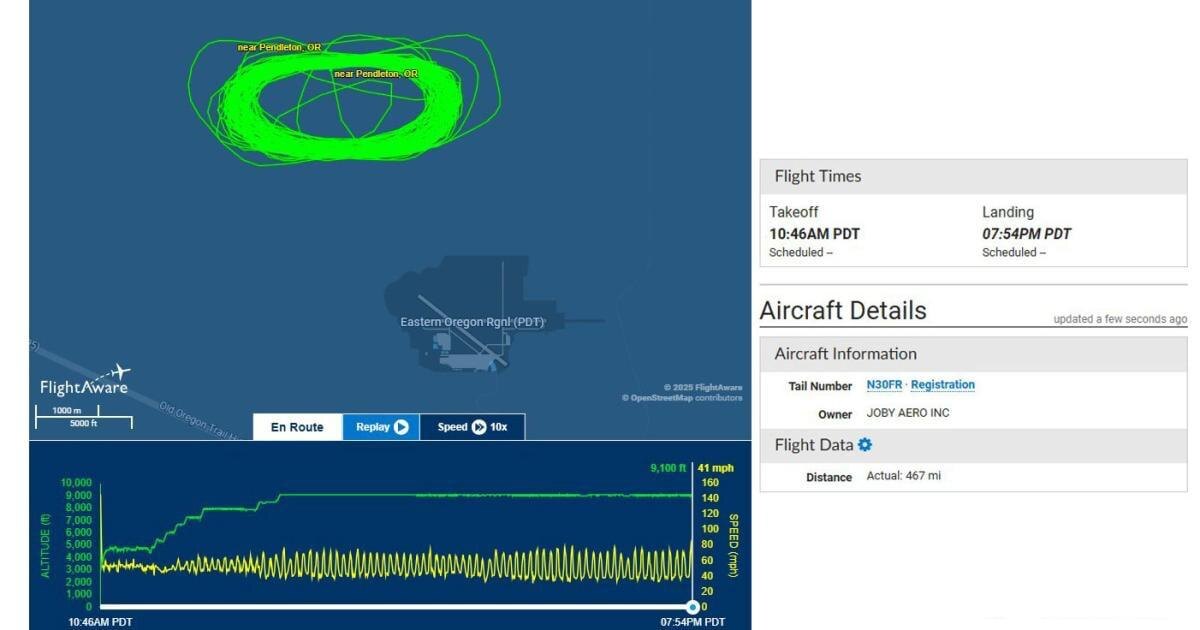 9 часов кружился в воздухе: Joby Aviation испытала водородный eVTOL в режиме секретности Американский разработчик аэротакси Joby Aviation провел девятичасовые испытания беспилотника на водородных топливных элементах 30 июня. Данные FlightAware (позже удаленные по запросу компании) показали, что аппарат N30FR кружил возле аэропорта Пендлтон (Орегон), преодолев 752 км со скоростью 82 км/ч. Согласно реестру FAA, это электрический многомоторный самолет с фиксированным крылом. Рядом находилась конструкция, напоминающая бак для водорода. Компания не комментирует испытания, но тест подтверждает ее интерес к водородным технологиям, потенциально увеличивающим дальность полетов. Удаление данных с трекеров характерно для закрытых испытаний перспективных разработок.