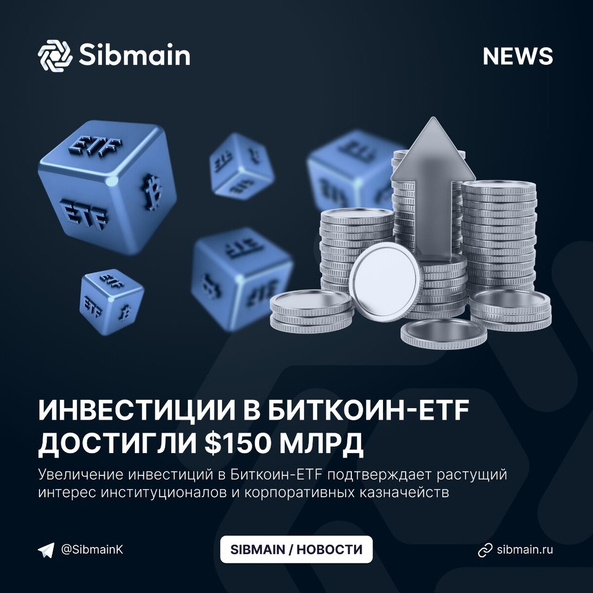 📰📰📰📰 ➡️Инвестиции в биткоин-ETF достигли $150 млрд Объем активов под управлением Биткоин-ETF вырос до рекордных $150 млрд. Лидеры по инвестициям: ⏺IBIT - $85,6 млрд ⏺FBTC - $23,6 млрд ⏺GBTC - $21,9 млрд 📍Увеличение инвестиций в Биткоин-ETF подтверждает растущий интерес институционалов и корпоративных казначейств