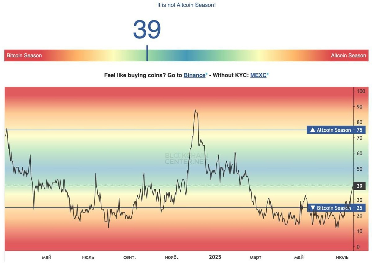 👀 Биткоин теряет доминирование — альтсезон на старте? Доля BTC на рынке снизилась почти на 3%, а индекс альтсезона — на максимуме с февраля. 📈 ETH усиливается в парах как к стейблам, так и к самому биткоину. 📊 Всё больше метрик указывает на переход интереса к альткоинам. 🔥 Начинается ли настоящая альт-волна или BTC ещё покажет силу?