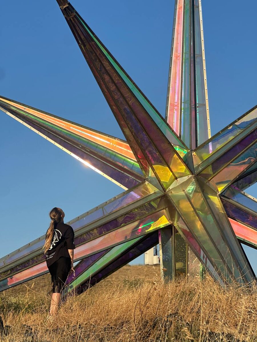 Оказавшись на Тавриде, мы, конечно, не могли пройти мимо «Пульсара». Тот самый science-art объект "Солнце Тавриды", про который наши друзья из Архитекции рассказывали в выпуске #IntCast. Десятиметровая конструкция из зеркальной стали и поликарбоната с хитрым покрытием, создающим переотражения днем и пропускающим свет ночью. Внутри — генеративная анимация и звук, построенные на реальных данных Пущинской радиоастрономической обсерватории. Это просто космос! Именно такие проекты сегодня становятся кодом новой визуальной культуры: точной, глубокой и эмоциональной одновременно. «Пульсар» стал символом Академии Меганом и арт-кластера "Таврида". Ребята из Архитекции — мощные художники и инженеры, которые умеют превращать науку в поэзию. Если вы ещё не смотрели выпуск IntCast с ними — самое время это исправить! ⚫ Вконтакте ⚫ Rutube ⚫ Youtube ⚫ Дзен В этом посте есть большое видео, которое не загрузилось в Дзен. Откройте оригинал поста в телеграме, чтобы его посмотреть