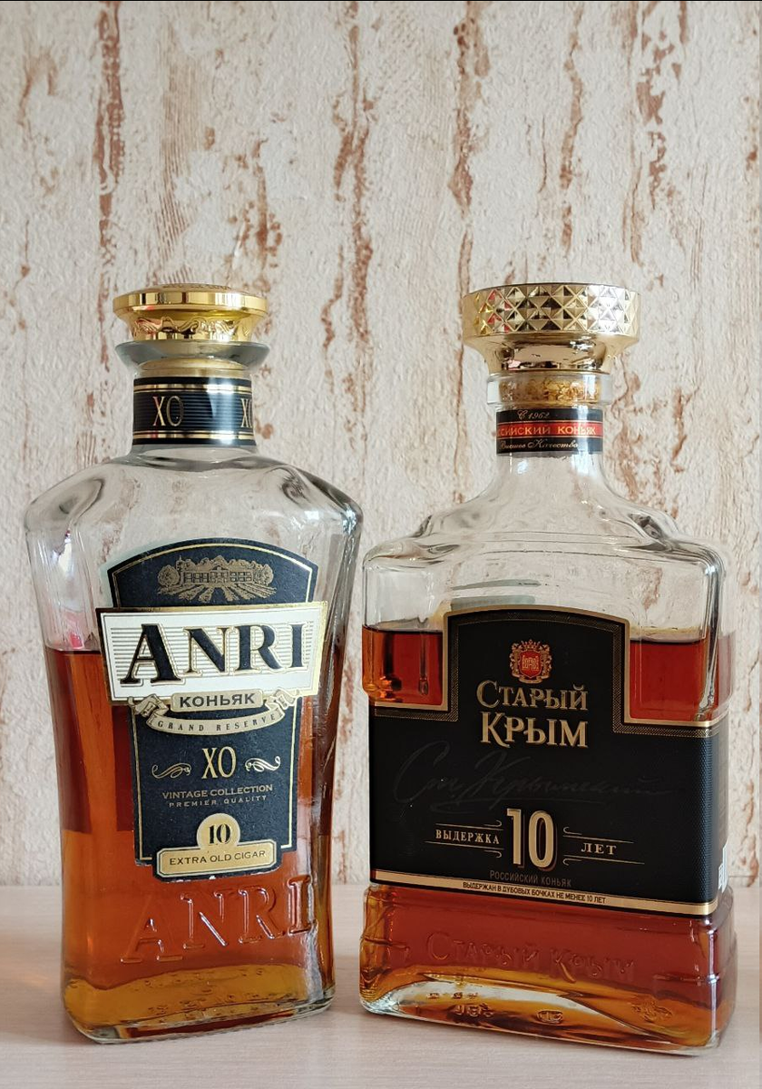 Продолжаем знакомиться с российскими коньяками. Очередной обзор от моего друга Александра Соболева (текст автора). Герои сегодняшнего обзора - Коньячный баттл: Старый Крым 10 против Анри 10. Ни в коем случае мои отзывы не претендуют на безапелляционную объективность. Это только мое личное мнение о конкретном напитке, а оценка выражает только мое отношение к нему. По просьбе Сергея провожу сравнительный тест двух десятилеток. Желание отправителя и читателя - закон. Хотя коньяки реально близки и по оценкам, и по цене, и по позиционированию, и по классу. По сути, различаются лишь профилем и вкусом. Какой лучше - конечно же решит каждый по своему. Мне остаётся лишь включить (то есть выключить) свою собственную вкусовщину... ТТХ давать не стану, просто сравню на свой вкус. АНРИ розлив 2019 г., СК - 2021 г. Составы идентичные: дистилляты, вода, сахар, колер. Цветом АНРИ светлее СК, что и ожидалось. А вот консистенция (маслянистость) совсем чуточку выше у АНРИ! Тем не менее - ничья. 1-1 Арома