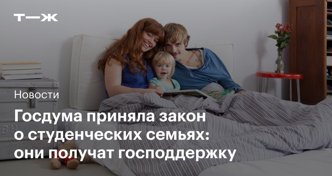 1️⃣ Студенческая семья — это подкатегория молодой семьи, которой нужны специальные меры поддержки. Депутат Госдумы Александр Толмачев пояснил, что это может быть место в общежитии, переход на бесплатную форму обучения для рожениц, помощь молодым мамам, правовая и финансовая поддержка. 2️⃣ Студенческой семьей будут считать студентов ссузов или вузов, которые зарегистрировали брак и завели ребенка, или студента — единственного родителя ребенка. Члены семьи должны быть моложе 36 лет. Форма обучения в вузе или ссузе неважна. 🔡 Рассказываем, что еще известно о новой мере поддержки: https://t-j.ru/d-tg/student-family