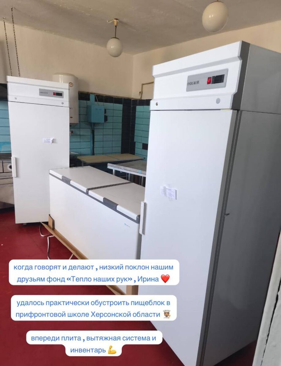 И снова радостная новость ‼️ Большая выполнена работа по помощи в организации пищеблока в прифронтовой школе Херсонской области. Выражаем большую благодарность директору Фонда «Тепло наших рук» Наркевич Ирине ❤️ Для добрых дел нет границ 🇷🇺