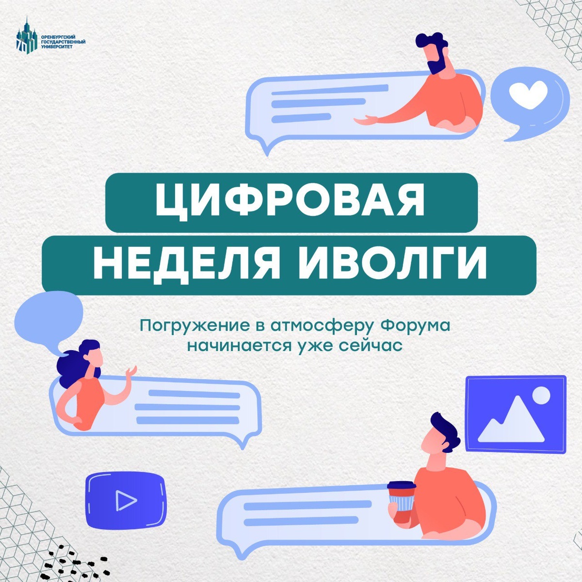 Хочешь окунуться в атмосферу главного молодежного события Поволжья до его старта? 🤩 С 14 по 20 июля в рамках подготовки к Молодёжному форуму ПФО «иВолга» проходит Цифровая неделя — серия онлайн-мероприятий, которая позволит участникам погрузиться в атмосферу форума до его старта. Это виртуальная версия настоящего форума, которая даст представление о том, что ждёт участников с 24 по 29 июля в Самарской области ☀️ В программе – прямые эфиры с экспертами, творческие конкурсы, мастер-классы, образовательные активности, встречи, нетворкинг. Также это отличная возможность получить ответы на интересующие вопросы, а для тех, кто ещё не определился с участием, это будет полезным знакомством с проектом. Подключайся к прямым эфирам здесь. 📍Организатор форума – аппарат полномочного представителя Президента России в ПФО Игоря Комарова при поддержке Росмолодёжи. #ОГУ #в_ОГУ #OSU #Росмолодёжь #Цифроваянеделя_иВолга2025