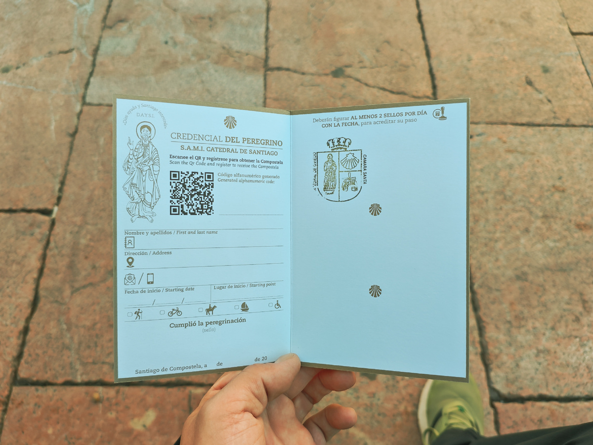 09.04.2025. Обычно на Camino пилигримы встают рано утром и выходят в путь не позже 8 утра. Но днём ранее я приехал в Овьедо после 6 вечера, собор был уже закрыт, пришлось идти к открытию в 10 утра, т.к. там необходимо было получить Креденсиаль – основной документ паломника, без него паломник не паломник. На всём пути в него ставятся печати в альберге, барах, кафе, церквях или даже просто торговец сувенирами на обочине дороги, может иметь собственную печать. Книжечка эта большая, печатей влезает много, некоторые выглядят особенно необычно, владельцы заведений подходят к этому вопросу очень ответственно.