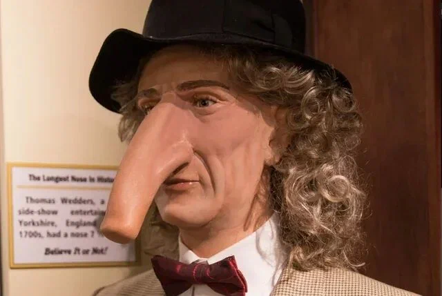 История хранит немало "лицевых" рекордов, но один из самых удивляющих — это нос Томаса Уэддерса(Thomas Wedders), британского циркача XVIII века. Да-да, хотя он и не был русским, в имперской России про него писали газеты, а портрет висел в одном из петербургских музеев как «нос величиной с легенду». Его нос был длиной — ВНИМАНИЕ — 19 сантиметров. Это примерно с указательный палец взрослого мужчины. А теперь представь профиль. Как с таким носом жить? Томас спокойно ходил по улицам, выступал в балаганах и даже шутил над собой. Звали его: Шнобель из Йорка Английский слонёнок Нос по профессии Легенда гласит, что в Питер его хотели пригласить «на приём к императору», но побоялись — вдруг Николай I обидится на конкуренцию 😅. Вы только представьте, друзья, сколько бы денег сейчас заработал этот товарищ в эпоху интернета и социальных сетей. Да он бы был одним из самых богатых мужчин. Это же как можно было бы себя подать красиво! Почему такой нос? Учёные предполагают, что у Уэддерса была генет