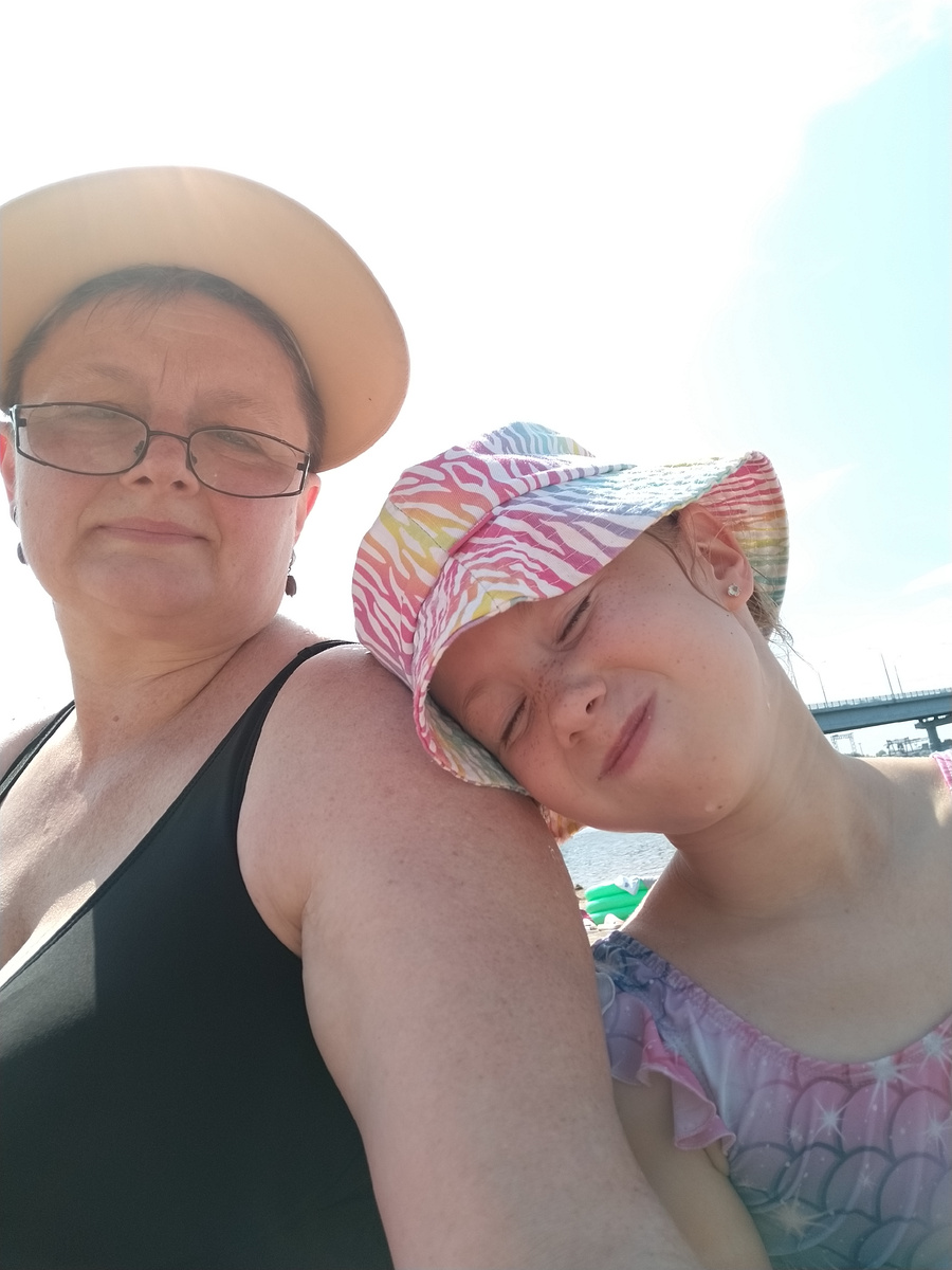 Вчера абсолютно спонтанно собрались и уехали с внучкой на пляж. Изначально задумка была попасть на самый новый в Затоне. Но, когда вышли из автобуса на Предмостовой площади, мой маленький штурман захотел на Золотые пески. Это посередине Волги под автодорожным мостом. Можно поехать на автобусе. Но, опять же- решение не за мной. Я за любую движуху, кроме голодовки. Пешком, так пешком. В конце концов, в моём детстве и юности на пляж бесконечно курсировали ОМики, которые в народе назывались речными трамвайчиками. А потом речной порт издох и трамвайчики отправились в Китай , где, возможно ещё бороздят китайские речные просторы. Хотя мы и тогда ходили ножками. Автобусы останавливаются прямо у лестниц, есть место для ожидания, но на открытом солнце. Ну мы и пошли по солнечному мосту. Внучка в панамке, бабка достала козырёк. Ах, какой это чудесный козырёк! Он выручает меня уже лет пятнадцать! Подруга привезла из Геленджика. Я солнечные очки не ношу. Были когда-то, но всегда обходилась без них. Сейчас важнее очки для зрения, а дёргать туда-сюда совсем неудобно. Козырёк моё спасение.