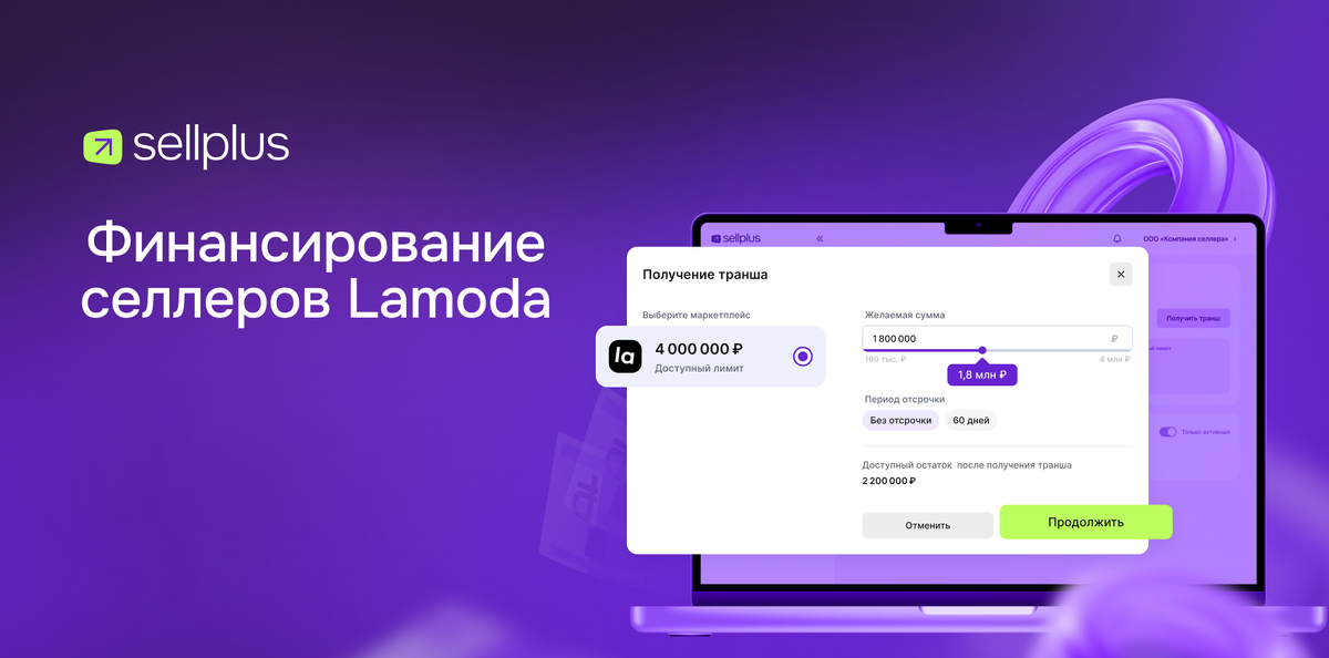 В рамках стратегического партнерства с fashion-ритейлером Lamoda сервис Sellplus реализовал специальную программу факторингового финансирования Решение ориентировано на селлеров Lamoda, которые могут получить денежные средства на срок до 12 месяцев с минимальной ставкой от 14% годовых. Заявку на финансирование продавец может оставить в личном кабинете Lamoda Seller, где прописана вся информация об услуге. В течение одного рабочего дня заявка проходит одобрение и клиент сразу получает доступ к финансированию. «Селлеры Lamoda уже успешно используют программу факторинга от Sellplus, которая обеспечивает им быстрый и удобный доступ к оборотному капиталу для производства и закупки ассортимента. Наше партнерство демонстрирует эффективный пример в e-commerce, где открытая экосистема сопутствующих сервисов гармонично дополняет цифровую платформу, создавая дополнительные возможности для развития бизнеса», — Анастасия Уткина, директор В2В продукта Lamoda. Факторинговая программа встроена в привы