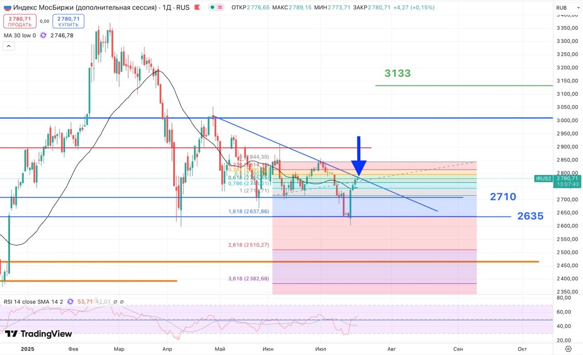 Наш индекс подошёл к наклонной линии, которую видит весь рынок. Так что тут может начаться откат, особенно на фоне завтрашнего дивгэпа в Сбере 🤔