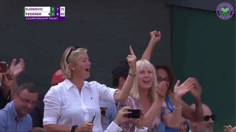 В финале «Уимблдона»-2019, когда у Роджера Федерера в пятом сете против Новака Джоковича был двойной матчбол на подаче, в трансляции на три секунды появилась болельщица с поднятым вверх указательным пальцем, по губам которой читалось «One more» – «Еще одно/один» (очко/эйс).