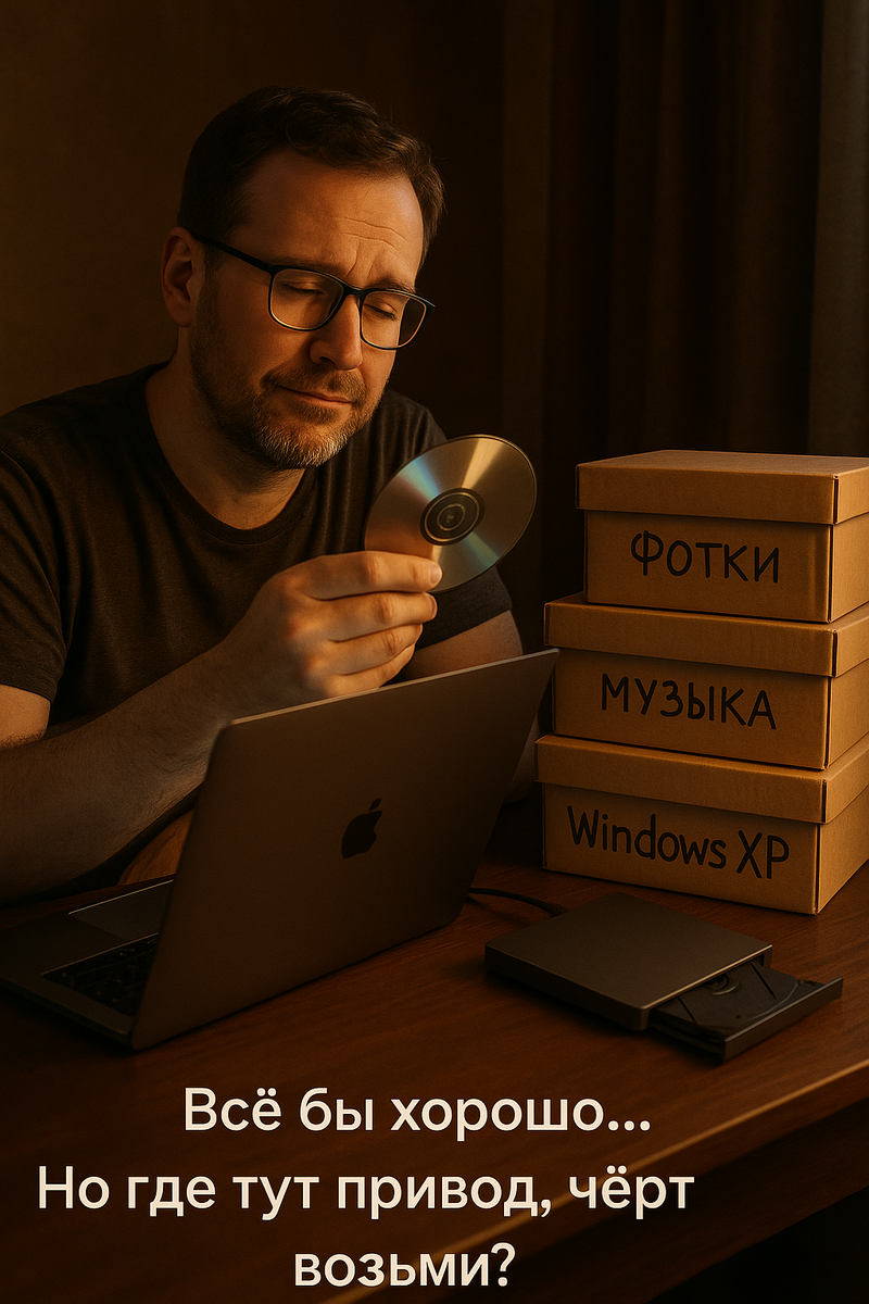 Типа «всё в облаке, всё по Wi-Fi», «USB — король», а диски — это как факс в 2025-м.