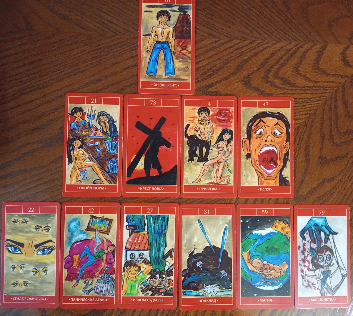 Вышли карты: "Сглаз", "Панические атаки", "Излом судьбы", "Подклад", "Магия", "Марионетка".