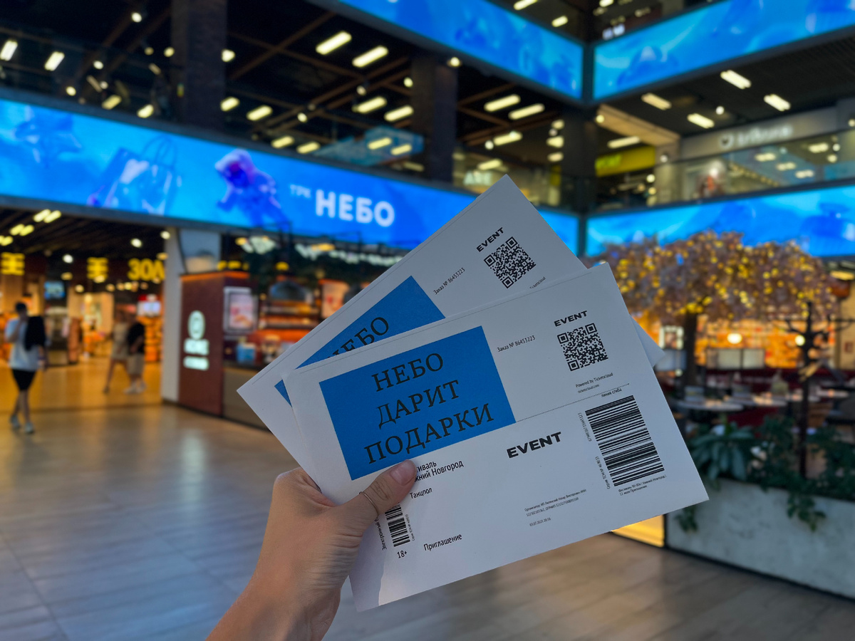Торгово-развлекательный комплекс «НЕБО» делает культурную жизнь города ещё доступнее! В официальных тelegram-канале и сообществе ВКонтакте на постоянной основе проходят конкурсы и розыгрыши билетов на главные мероприятия города. Каждую неделю подписчики получают шанс выиграть пригласительные билеты на самые ожидаемые мероприятия в Нижнем Новгороде: эксклюзивные выставки в современном арт-пространстве Цех*, пакгаузах или других культурных локациях; концерты популярных музыкальных исполнителей; юмористические шоу и stand-up выступления; спектакли ведущих театров города; детские спектакли и мероприятия; крупные фестивали города и области. Принять участие в розыгрышах может любой желающий – для этого нужно всего лишь быть подписанным на соцсети «НЕБО», в телеграм-канале нажать кнопку для участия, а в сообществе ВКонтакте сделать репост. Кроме того, «НЕБО» регулярно радуют своих подписчиков сертификатами в рестораны и магазины комплекса. – Наши розыгрыши – это возможность подарить гостям и