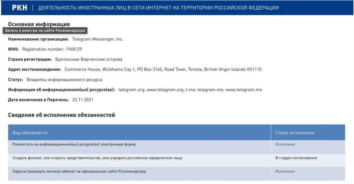 ⚡️ Telegram начал регистрацию своего представительства в России сообщают СМИ.