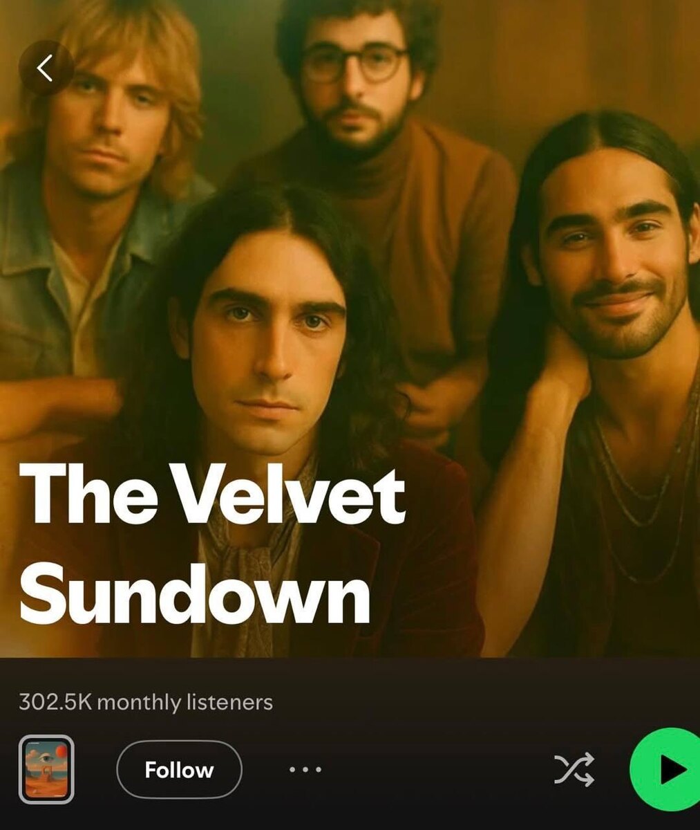 Помните, я предположил, что скоро блогеры будут не нужны? Но, оказывается, переживать нужно было за музыкантов. На Spotify за пару недель взлетела группа The Velvet Sundown. 850 000 прослушиваний, два альбома, атмосферный винтажный рок. Только проблема в том, что… этой группы не существует. Вся музыка, обложки, даже «участники» — это работа нейросетей. Для Spotify это очень удобно. Ведь никаким артистам платить не нужно. P.S. Место, где удобно обсуждать всё узким кругом.