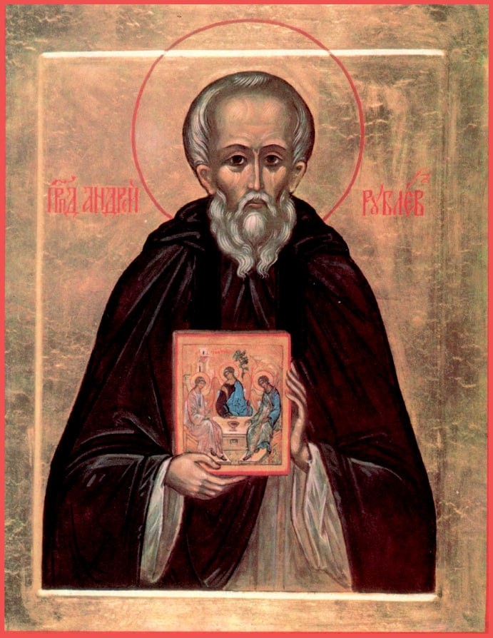 Преподобный Андрей Рублёв (ок. 1360–1428) – великий русский иконописец, монах. Принял постриг в московском Спасо-Андрониковом монастыре, около 20 лет подвизался вместе со св. иконописцем Даниилом Чёрным. Создал непревзойдённые образцы иконописи, включая знаменитую "Пресвятую Троицу". Расписывал Благовещенский собор Московского Кремля, Успенские соборы во Владимире и Звенигороде, Троицкий собор Троице-Сергиевой лавры. Его творчество стало вершиной древнерусской живописи. Молитва О, преди́вный иконопи́сче преподо́бне о́тче Андре́е! Услы́ши моле́ния на́с, гре́шных, с ве́рою, наде́ждою и любо́вию взыва́ющих тебе́, и бу́ди предста́телем на́шим пред Свято́ю Тро́ицею. Твори́вый благода́тно в хра́мех Бо́жиих, помози́ и на́м созида́ти хра́мы во сла́ву Бо́жию. Пости́гнув та́йны красоты́ и́стинныя, озари́ на́с позна́нием красоты́ богослуже́ния нетле́нныя. Исцеля́яй ду́ши взира́нием на ико́ны твоя́, да́руй на́м и моще́й твои́х цельбу́. Послужи́вый едине́нию ве́рных, исхода́тай и на́м еди́ным се́р