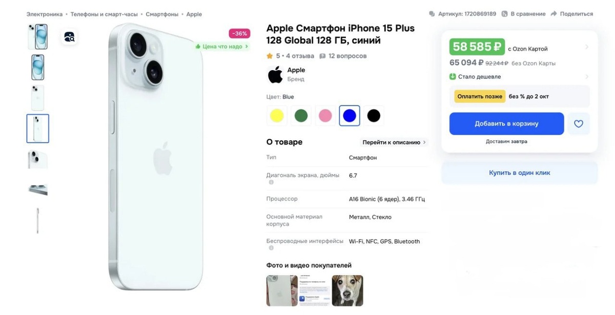 Цена iPhone 15 Plus упала до 58 тысяч рублей — всё ещё актуальный айфон прошлого поколения можно урвать за хорошую цену