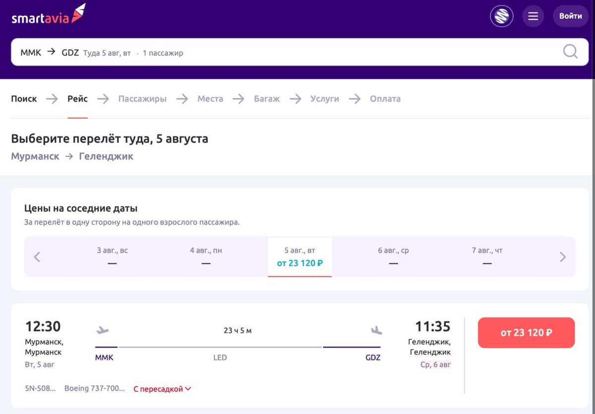 В ответ на пост ✈️ Авиакомпания «Смартавиа» открыла продажи билетов в Геленджик из Пулково. По сообщению пресс-службы, первый рейс состоится 6 августа, а стоимость билетов начинается от 14 690 рублей (в одну сторону). Рейсу будут выполняться по средам и субботам, время в пути – около пяти часов. Уже можно купить билет из Мурманска, но в Питере придётся провести почти сутки. Стоимость такого билета начинается от 21-23 тыс. рублей. ❄ «Арктический Обозреватель»