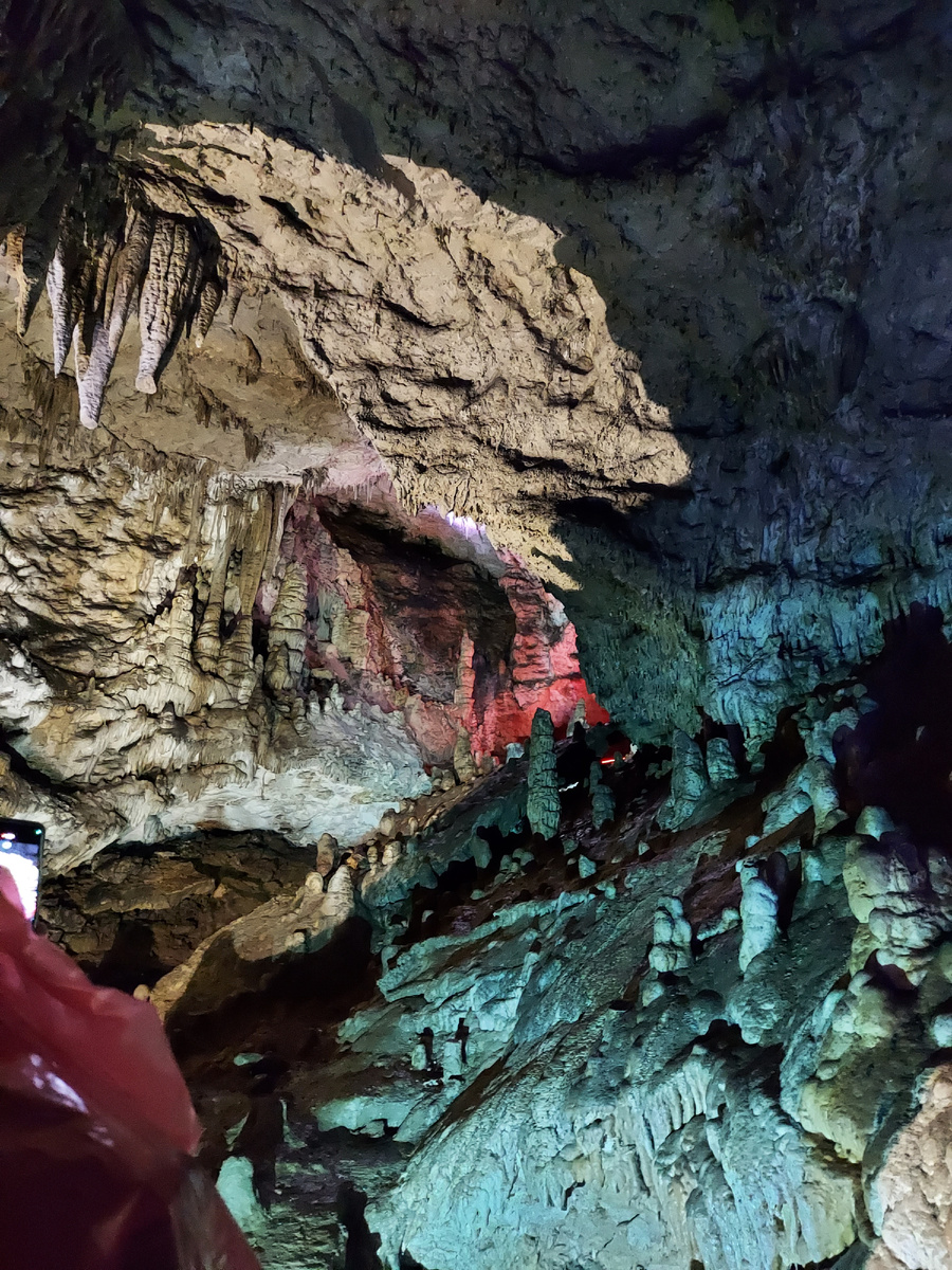 В Адыгее находится небольшая, но глубокая чудо пещера. Не сравнится размерами с Новоафонской в Абхазии, но невообразимо красивая. Из-за глубины пещеры спуск проходит легче, чего не сказать о подъёме и выходе из неё. Примечательно, что полезным воздухом пещеры местные жители лечатся, получая направление от врача и принимая воздушные ванны по индивидуальному времени. Воздух чудесный, чистый! Невозможно надышаться. На интересно созданные образования, сталактиты и сталагмиты экскурсовод обращает внимание туристов и подсвечивает картинку. Тут есть весёлый или грустный смайлик, привидение или девочка фея. Рисуй, рисуй воображение! Экскурсия интересная. Пещера не холодная. За пещерой буково-пихтовый лес, поднимаясь на гору по красивому лесу выходишь на смотровую площадку. В хорошую погоду открываются изумительные виды с высоты птичьего полёта. Когда облака низко, ты как будто паришься на облаках и трогаешь их руками. Красивое место! Наслаждаешься пейзажем и вдыхаешь невероятный за