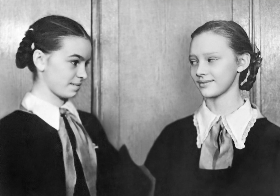 В июле 1965 г. в Москве проходил IV Московский Международный кинофестиваль. Большой приз получил фильм Сергея Бондарчука «Война и мир». Роль Наташи Ростовой в нем сыграла Людмила Савельева, выпускница ЛАХУ. На фотографии 1950-х Людмила Савельева (справа) с одноклассницей Зинаидой Любченко. Летом 1961 г. в выпускном концерте она вместе с Валентином Оношко станцевала па де де из второго акта балета «Жизель» и была зачислены в труппу ГАТОБа им. С. Кирова. Исполняла небольшие «афишные» партии. Танцующей ее можно увидеть в фильме-балете «Спящая красавица» (1964 г.) – она была одной из нереид. С этого момента начался ее «роман» с кинематографом. На пробах на роль Наташи Ростовой ей удалось убедить режиссера в том, что она – балетная артистка – сможет сыграть драматическую роль в кинофильме. И к лету 1964 г. уже была снята сцена бала Наташи Ростовой. Но Савельевой приходилось метаться между Москвой и Ленинградом, что сказалось на ее здоровье. В итоге, отказавшись от карьеры балерины, она выб