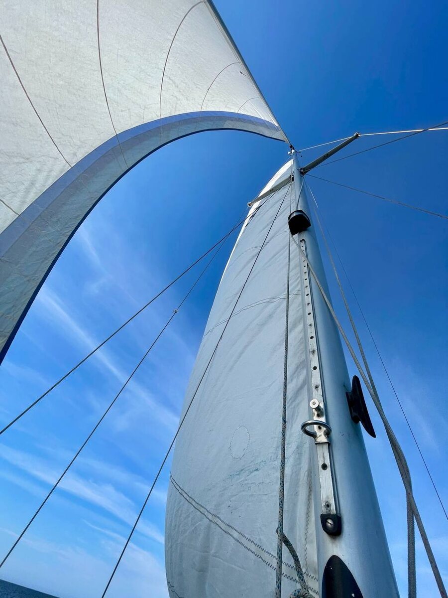 Вчера (16.07.2025), после беспокойного утра, описанного в прошлом посте, мы ушли с Соловков на остров Большой Жужмуй. Сильный ветер, доставивший нам с утра столько проблем, через час пути предательский стих, а укачивающая волна так и била в корму на 45° до самого конца пути. В 18-20 бросили якорь с Юга острова. Так как он окружен широкой полосой отмели близко к берегу не подойти. Встали далеко. Высадились на пляж, отойти и от качки и посмотреть местный маяк. Подойти к маяку можно только с северного берега, для чего нам пришлось обойти почти весь остров вдоль кромки воды. Остров оказался на много больше, чем мы ожидали. С невероятно красивой природой. Васильки, березы, поляны ягеля, грибы и куча неизвестных нам трав и цветов. А так же хвойный и смешанный лес. На восточной окраине острова сезонными рабочими ведутся работы по заготовке ламинарии (если верить интернету), но до этого места мы не дошли. За всю свою пятичасовую прогулку на острове людей мы не встретили. Лишь два челов