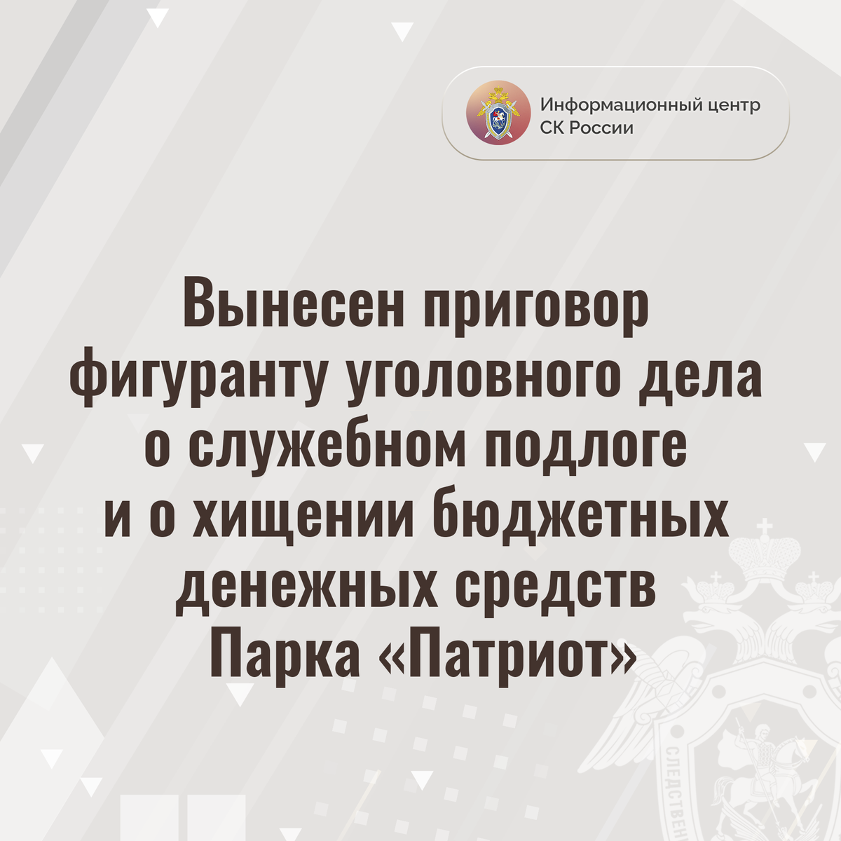 Вынесен приговор фигуранту уголовного дела о служебном подлоге и о хищении бюджетных денежных средств Парка «Патриот»