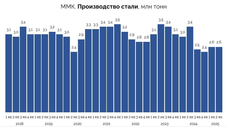 💿 ММК выпустил опер. отчет за II кв. Насколько привлекателен металлург? — Выплавка чугуна выросла почти на 9% к прошлому кварталу и упала на 10% г/г — до 2,4 млн тонн. Квартальная динамика объясняется завершением ремонта ДП №6. — Производство стали показало рост на 2% кв/кв и составило 2,6 млн тонн. Сравнивая со II кв. 2024 г., видим падение на 22% с сильной базы. Тогда всплеск производства объяснялся оживлением деловой активности при ставке 16% и ожиданиями по ее снижению. 📉 Сезонно сильный в последние годы II квартал не стал прорывным из-за давления ставки и текущих капитальных ремонтов. ММК продал 2,5 млн тонн металлопродукции (-18% г/г). Основное снижение наблюдалось в сегменте премиальной продукции (-29% г/г) — до 1 млн тонн. Ее доля в общей реализации опустилась ниже 40%. ⭐️Мнение GIF Годовая динамика производства и продаж по-настоящему отражает проблемы в секторе. Оживление на фоне сезонного фактора в этом году проявляется довольно слабо. Однако ММК и весь сектор получа
