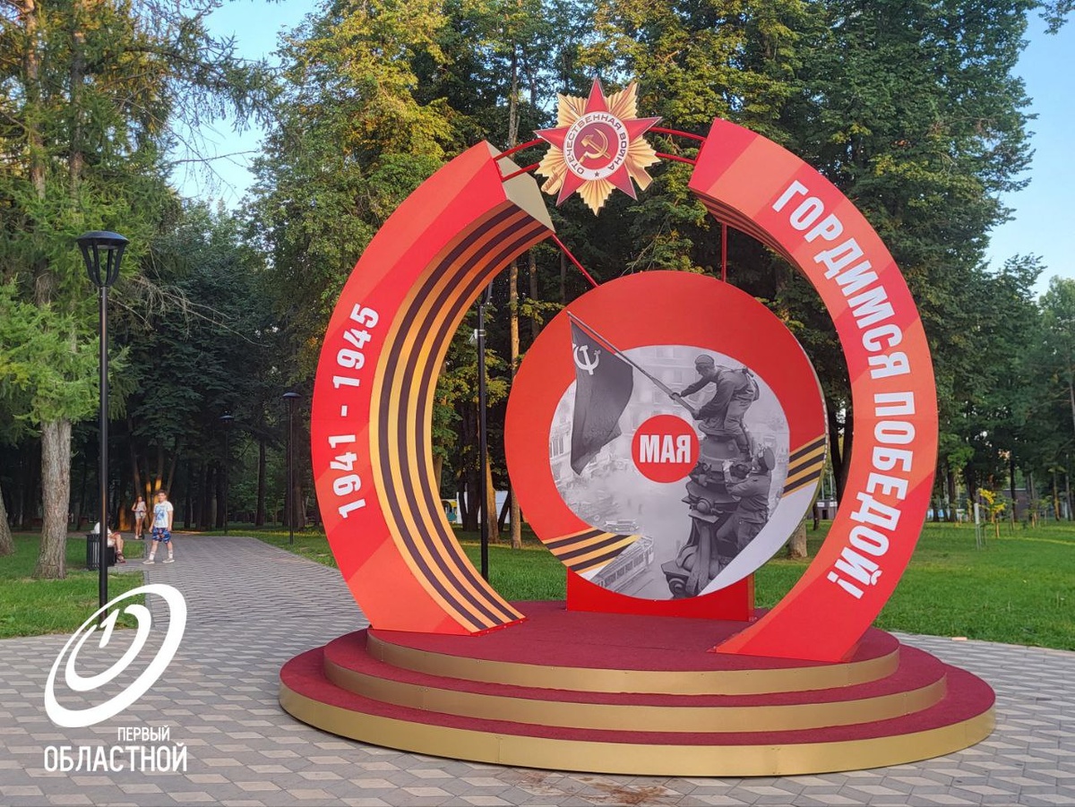 На входе в парк установили новый арт-объект - большую фотозону "Гордимся Победой!".