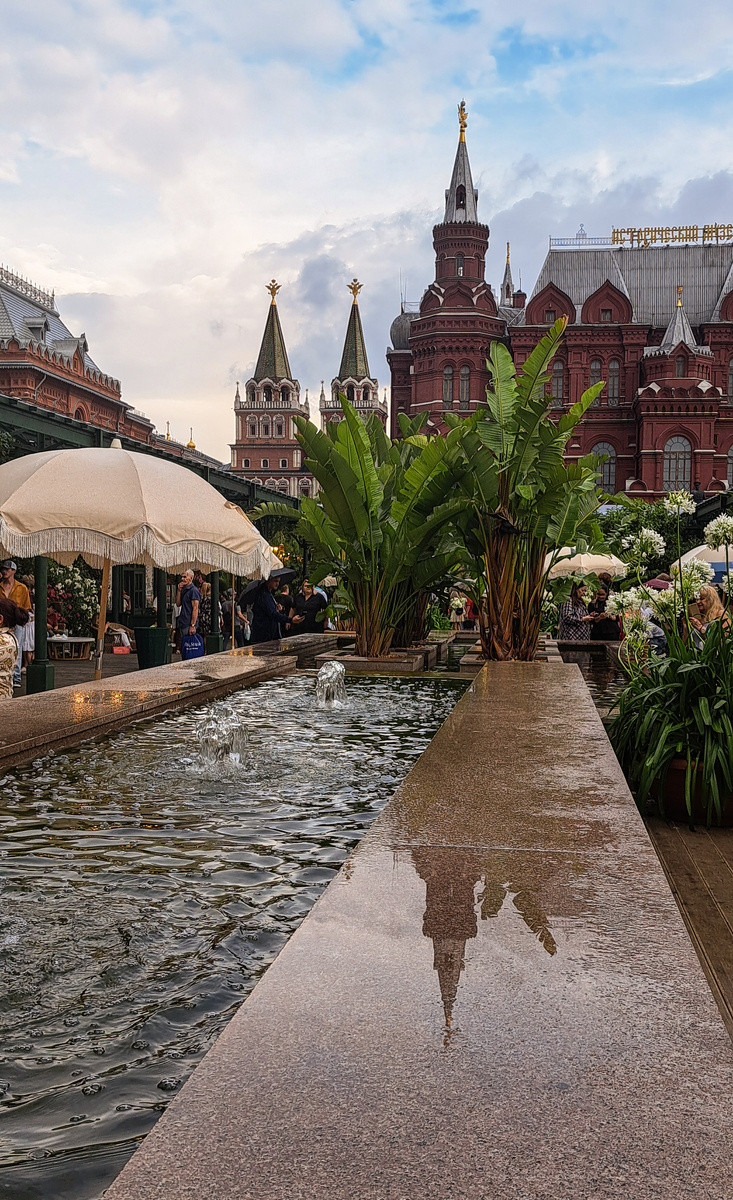 Фестиваль "Сады и цветы" проводится уже не первое лето, в этом году продлится до 9 сентября. В центре города «расцвели» мосты, появились вертикальные зеленые стены, «выросли» живописные аллеи и водные сады – каждый проект вновь предсталяет уникальное видение ведущих российских ландшафтных дизайнеров и архитекторов. Весь теплый сезон фестивальные площадки будут ждать гостей. Здесь можно укрыться от солнца и отдохнуть от ритма мегаполиса, оценить художественные решения и сделать невероятные фотографии. На Манежной площади этим летом масштабная, но не единственная площадка фестиваля. Зато, на мой взгляд, самая яркая. Во-первых, растения. Если пальмы уже здесь устанавливали неоднократно, то бананы, бамбук и прочие, названия которых я не знаю, тут впервые. Так же здесь появился водопад и водоем с рыбками и черепахами. Это прям вау! На Площади Революции уже не так много растительности. Кованые арки и изящные люстры. Шикарные беседки с розами. Совсем недавно здесь проходил фестиваль Инди