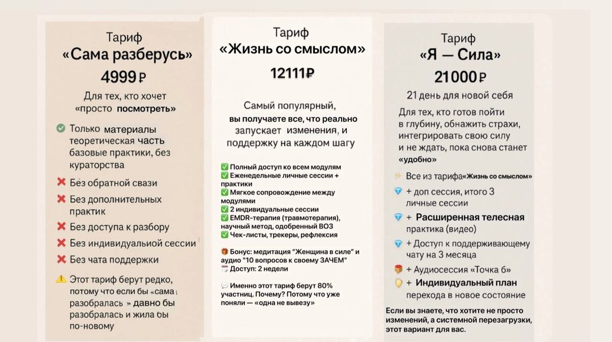 ⚡️Last Call. Как перестать пробуксовывать и начать наконец жить полноценную жизнь, получая результат и чувствуя себя полноценной? Первое, что теряется в потоке дел, марафонов "КАК ВСЕ УСПЕТЬ?", "гденьги?", материнства или просто этой вечной "тревожной зуммерии" это контакт с собой, питающий жизнь. То есть сначала "марафонец" пытается всё успеть, а потом удивляется, почему ничего не радует, почему ничего не хочется, сил нет, только тревога, самокритика и перфекционизм. Но сегодня хочу сказать вот что: я вас очень понимаю Понимаю, когда: —Кажется, что "вот сейчас начну", но год за годом ничего не меняется. —Хочется, чтобы кто-то увидел в тебе тот самый "недооцененный алмаз" (а главное, чтобы ты сама в это поверила). —Страшно идти в проявленность, потому что вдруг "недостаточно хорошо". —Обещаешь себе "не гнаться за чужим мнением", но потом снова делаешь что угодно, лишь бы чувствовать себя нужной. Кому знакомо? Мне да. Я тоже через это проходила. И знаете, что сильнее всего в