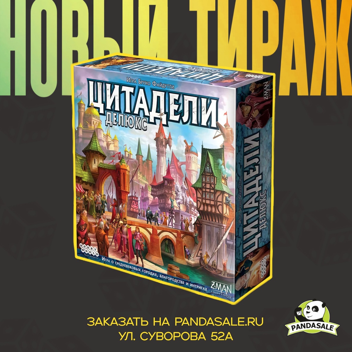💥 Новый тираж в PandaSale: Цитадели. Делюкс! ✨ Цитадели. Делюкс: мировой хит, где игроки соревнуются за звание главного королевского строителя, тайно выбирая персонажей для сбора ресурсов, получения преимуществ и возведения престижных кварталов города. В этом расширенном издании объединены базовая игра и дополнение, добавлены новые персонажи, кварталы, улучшенные компоненты (включая пластиковые монеты и корону), а также сценарии, предлагая рекордное количество вариантов для стратегий и интриг. 🐼 Построить средневековый город → 📍 Приехать: Суворова 52а 📞 Позвонить: +7 (908) 177-87-17 #PandaSale #PandaNew