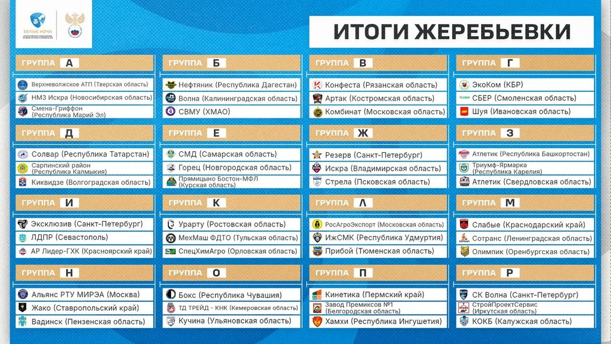 Известны итоги жеребьевки Всероссийского турнира «Белые ночи
