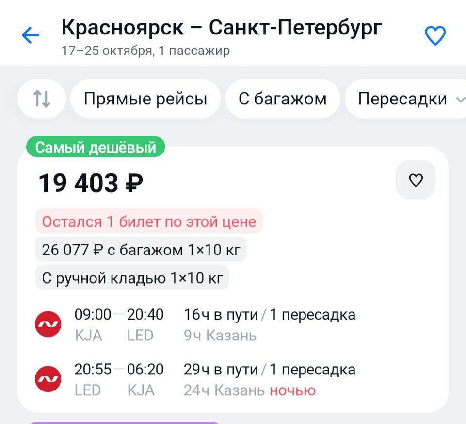 Казань + Петербург в одном путешествии. Забытый "стоповер" от Нордов: летим из Красноярска в Петербург и по пути туда или обратно смотрим ещё и Казань. 📌 Октябрь - 19400₽ ↔️ https://aviasales.tpm.lv/d14tSs6z 📌 Ноябрь-декабрь - 16000₽ ↔️ https://aviasales.tpm.lv/41jLVWzp #KZN #LED @KJA